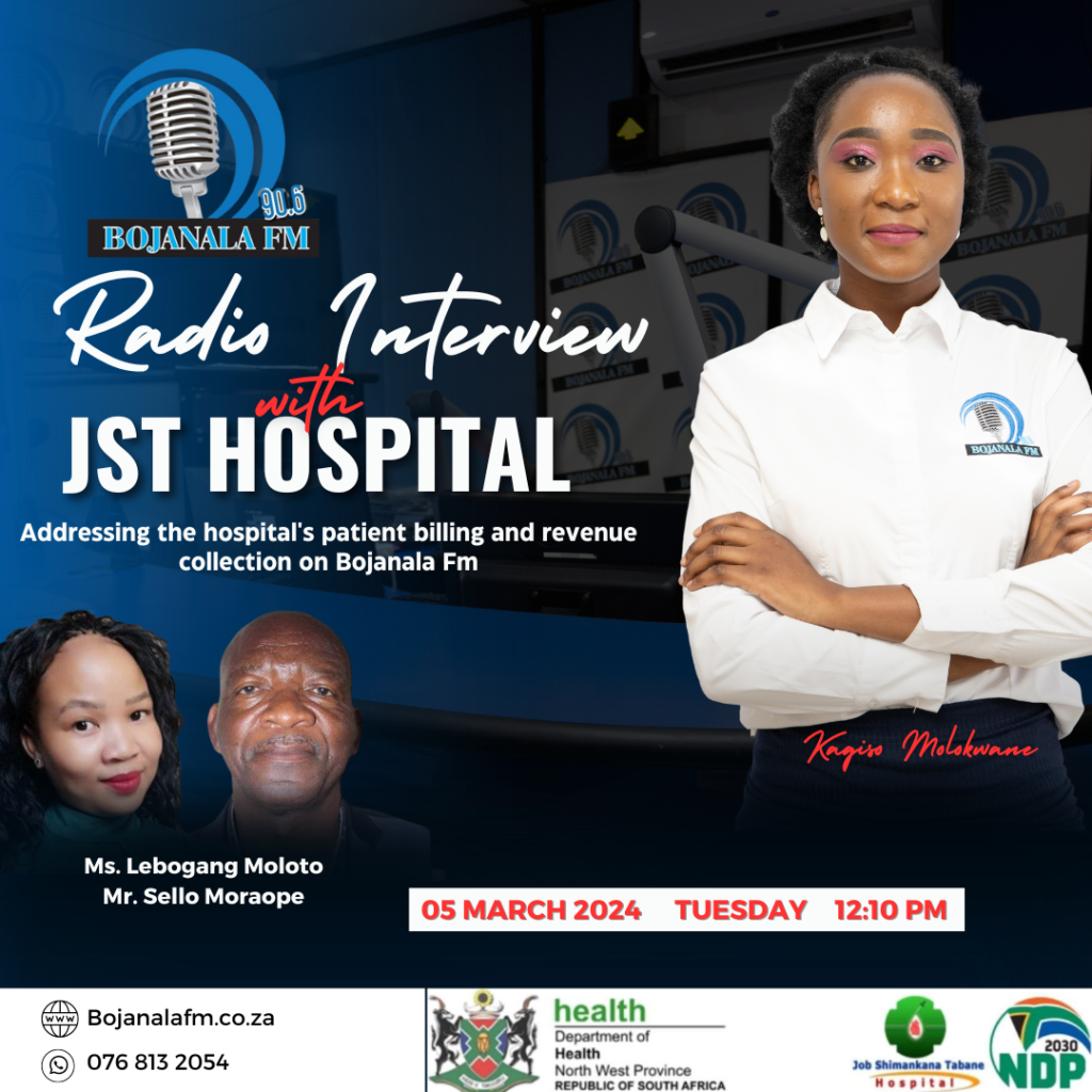 Mr. Sello Moraope and Ms. Lebogang Moloto will address the hospital’s patient billing and revenue collection on Bojanala fm 90.6 at 12h10.